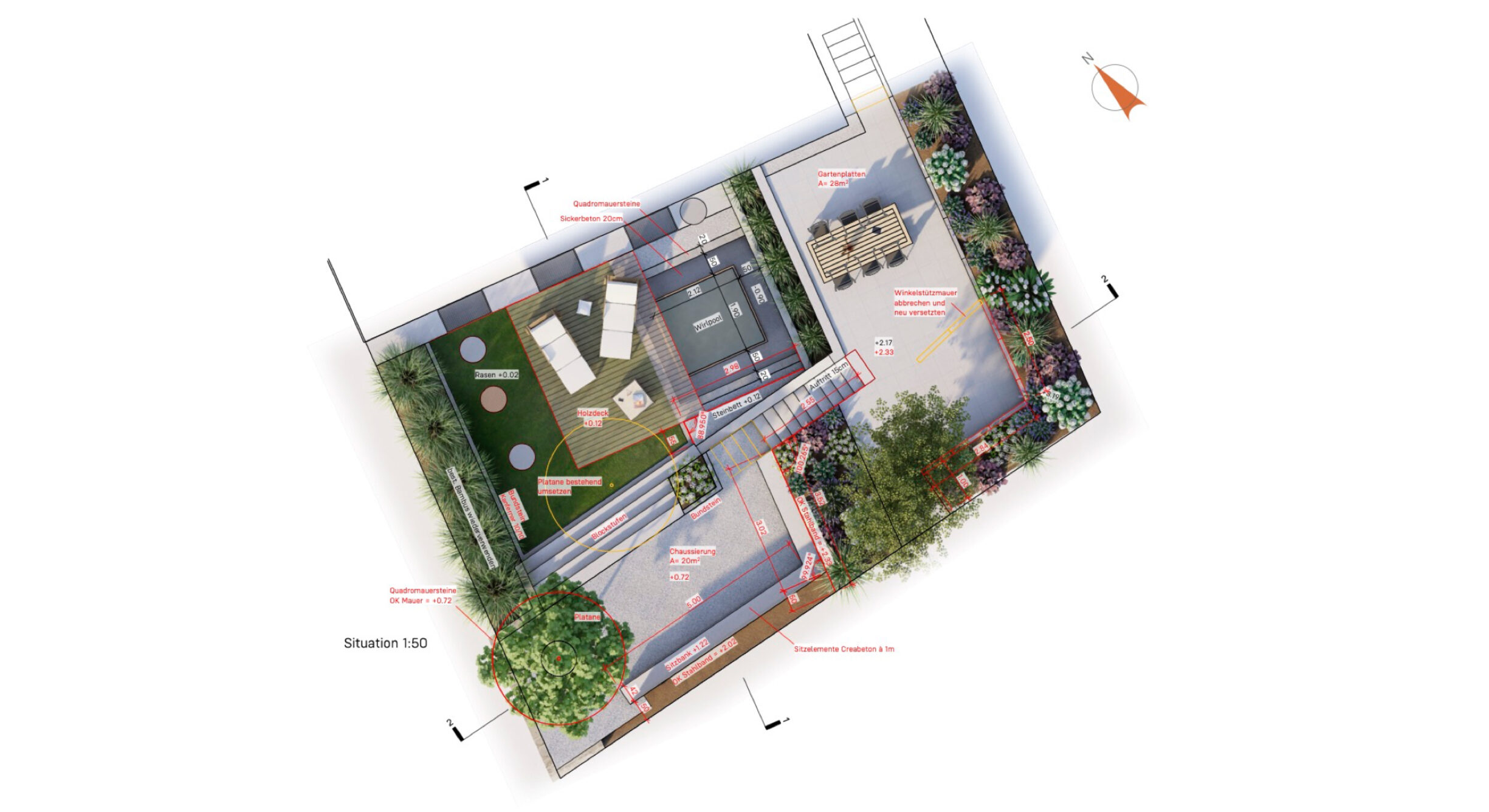 Vom Ideenkonzept bis zur Detailplanung: Wir bringen Ihre Ideen und Wünsche für Ihren Traumgarten aufs Papier. Während des ganzen Prozesses stehen wir Ihnen beratend zur Seite und unterstützen Sie bei sämtlichen gärtnerischen Fragen. Dank eines vollständigen und übersichtlichen Leistungsbeschrieb lassen sich die Kosten abschätzen und kalkulieren. Denn: Eine seriöse Gartenplanung legt den Grundstein für eine reibungslose Auftragsabwicklung.