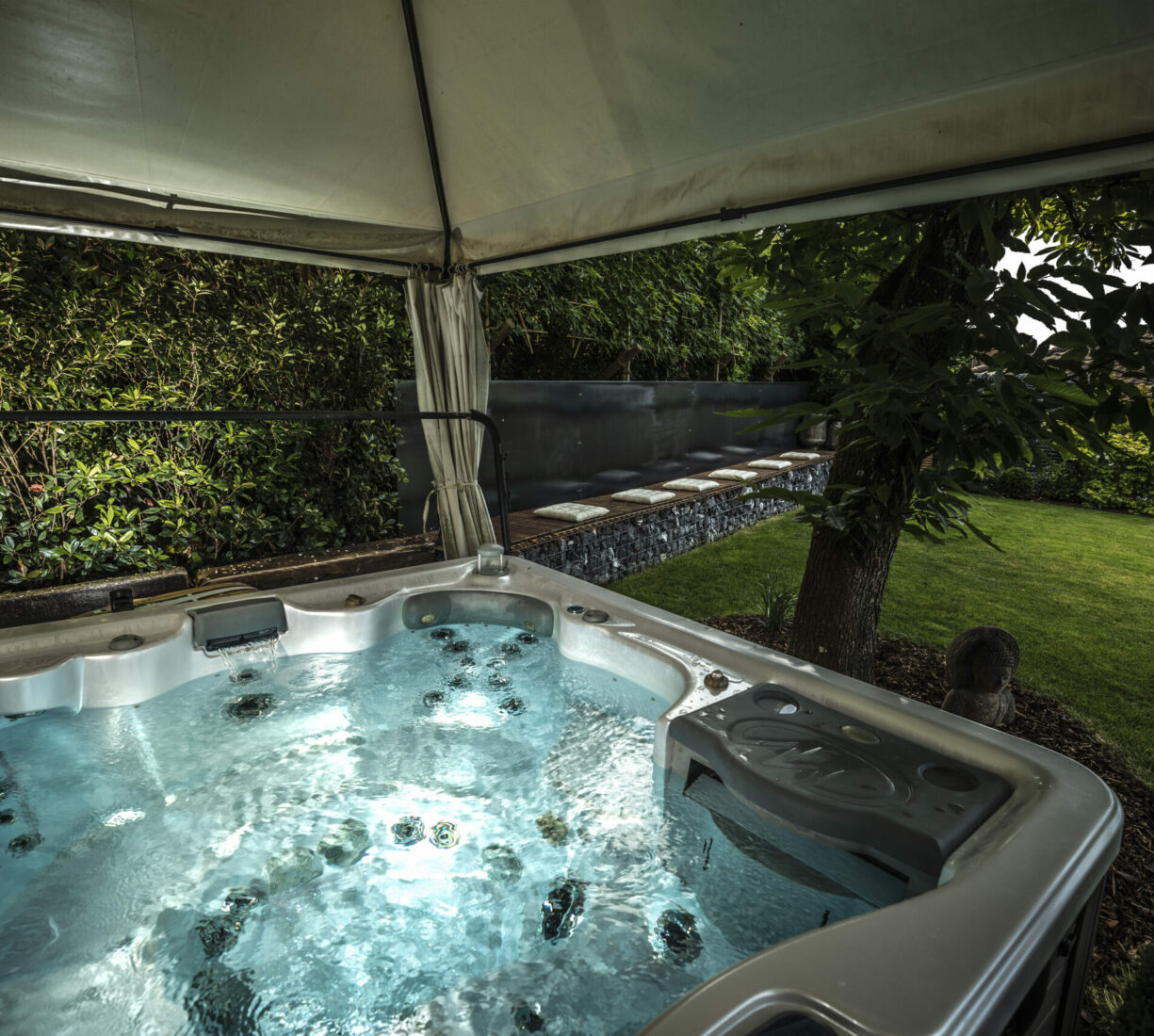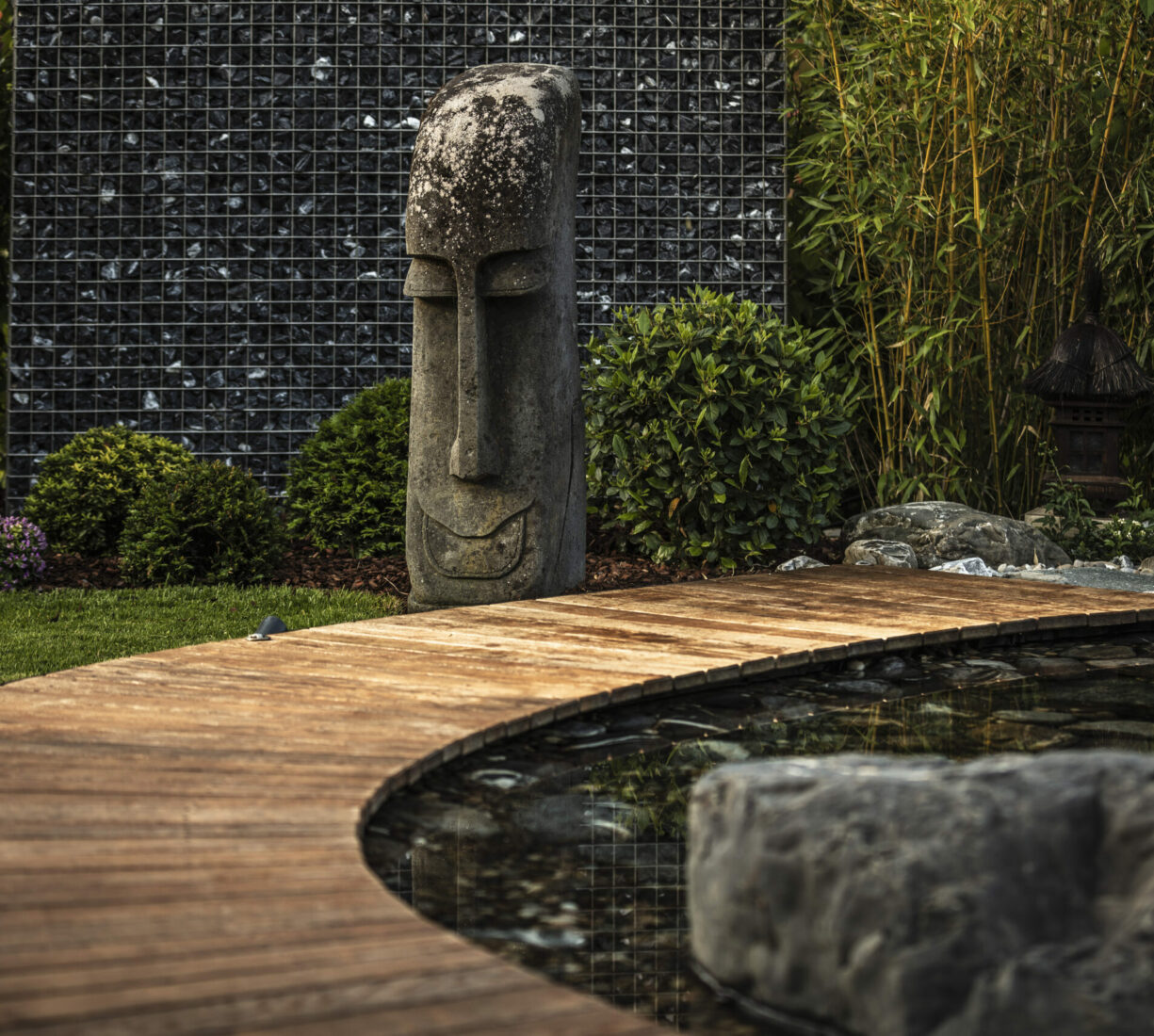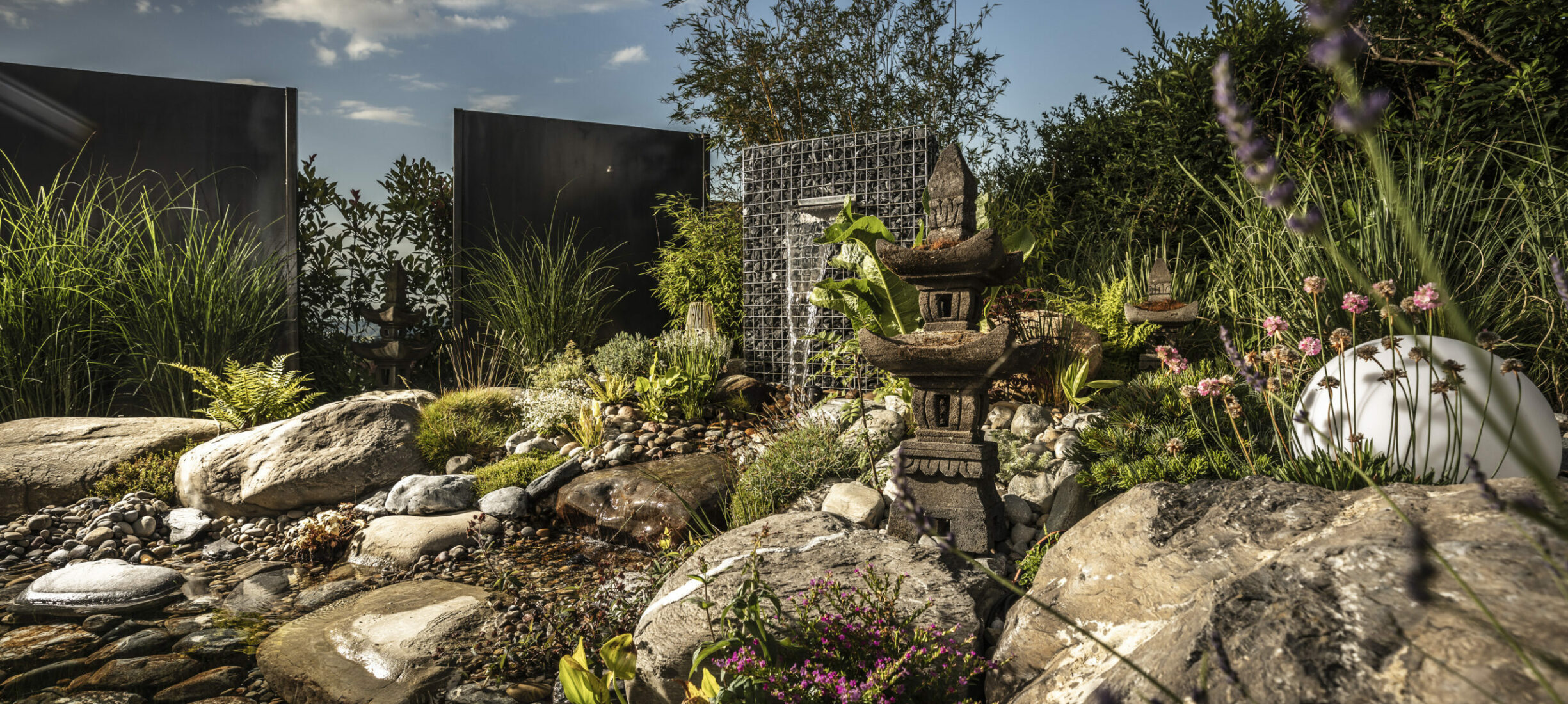 Das Auge geniesst mit. Der Garten wurde stimmungsvoll, modern und stylisch in Szene gesetzt. Der Teich ist nicht nur schön anzusehen, das Plätschern des Wasserfalles vermittelt Ruhe und Geborgenheit. Perfekt, um im Whirlpool zu relaxen.