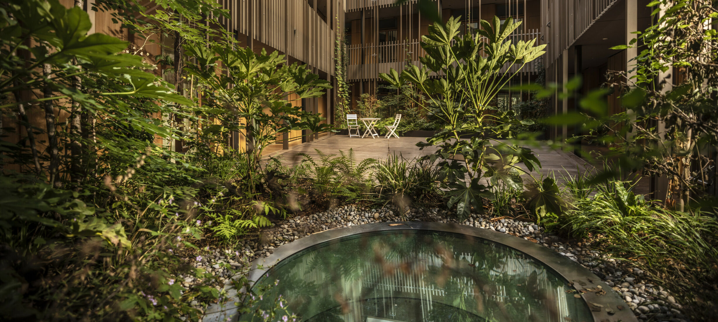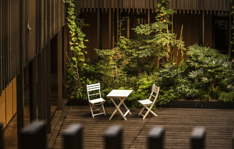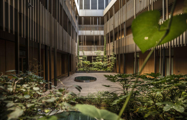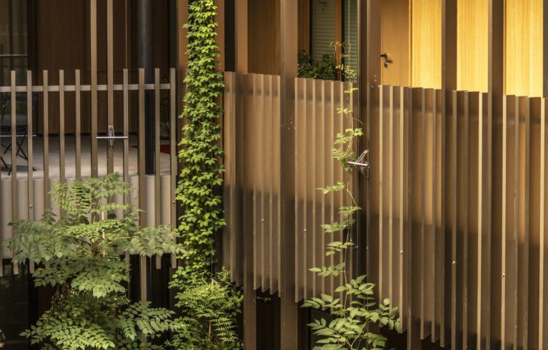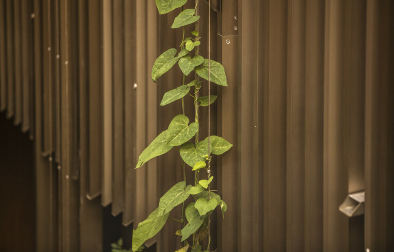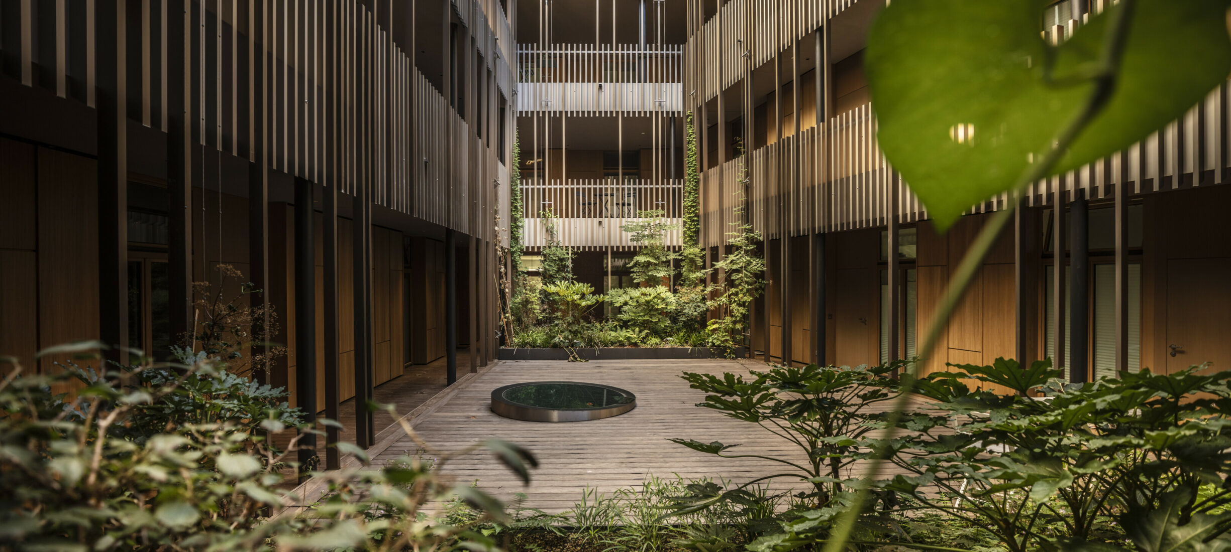 Der grüne Innenhof dient als Eingangsbereich sämtlicher Wohnungen. Die Pflanzrabatten bilden dabei den grünen Eyecatcher. Die Pflanztröge sind mit einer automatischen Bewässerung ausgestattet. Die Kletterpflanzen ranken sich in die Höhe: Wahres Dschungel-feeling mitten in der Stadt!
